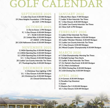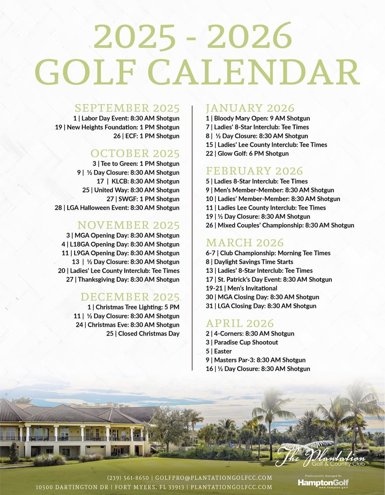 Opening Day, Mid-Season Blast, Single Day Member/Guest and Spring Fling