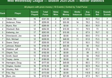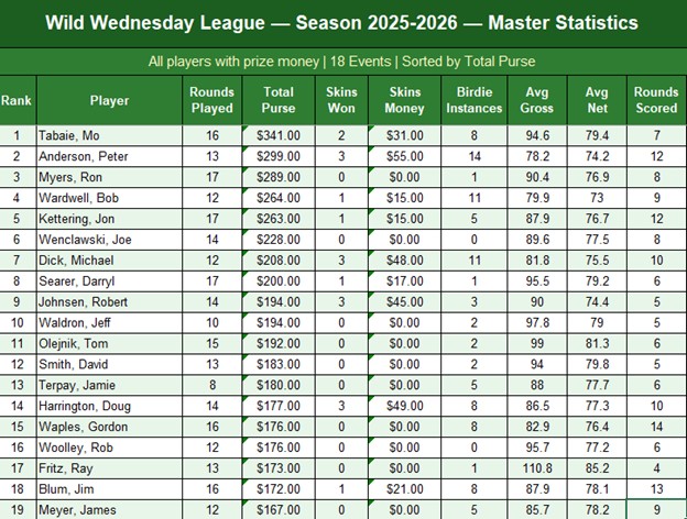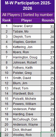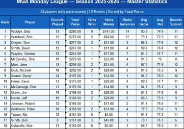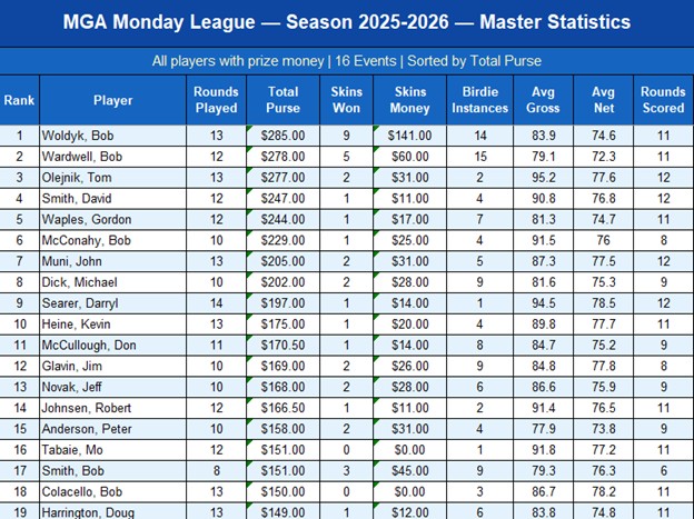 These are the Top winners - for detail see 2025-2026 Season Long Results Excel File in MGA Tournament page