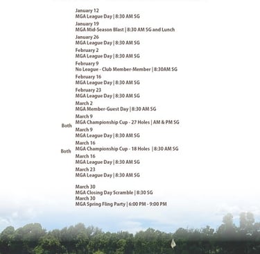 Opening Day, Mid-Season Blast, Single Day Member/Guest and Spring Fling